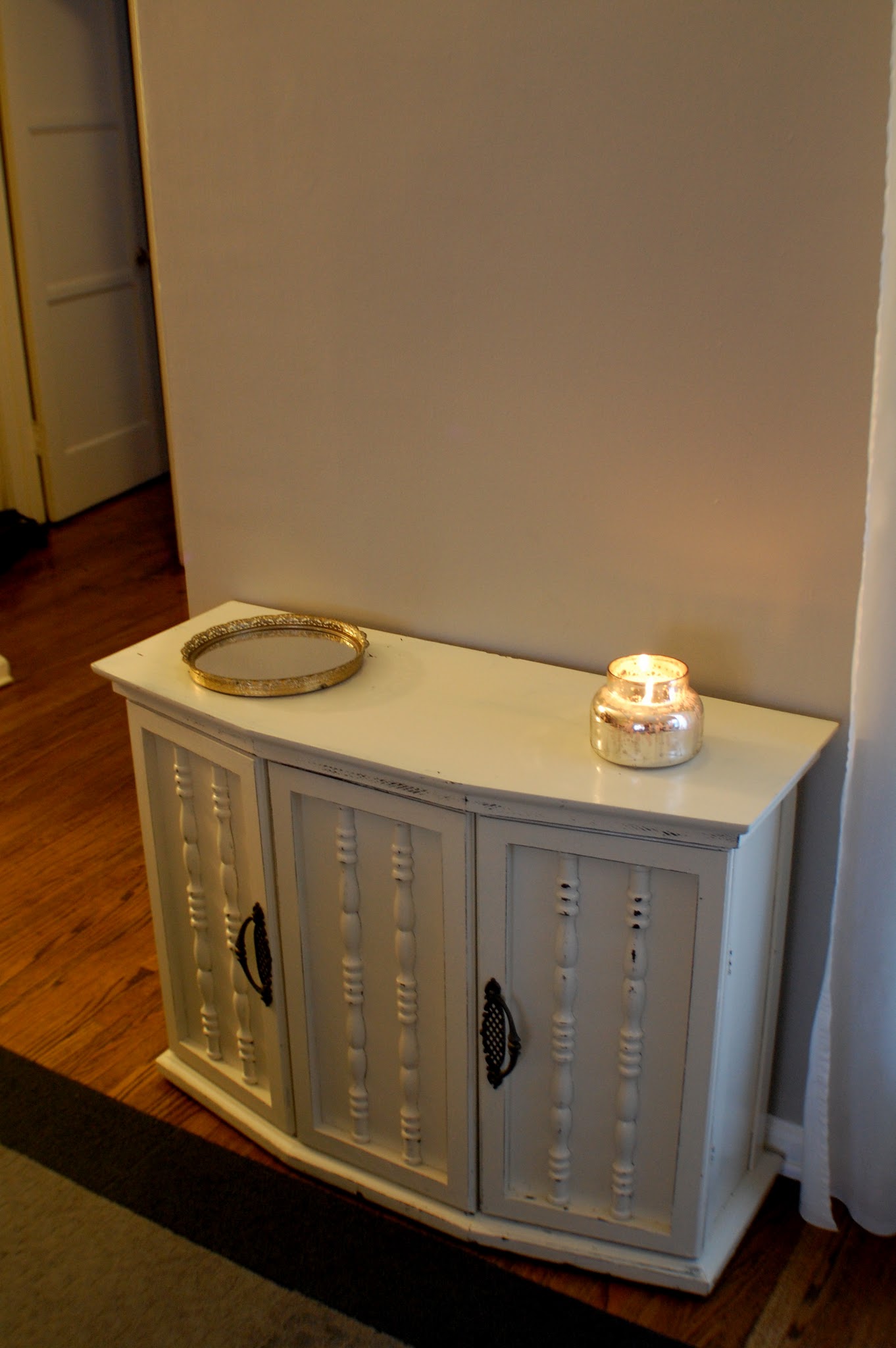 Anyhow, on my most recent trip with my decorating accomplice Marissa, I came home with this darling little...I don't know what to call it. Cabinet? Sideboard? I don't know.